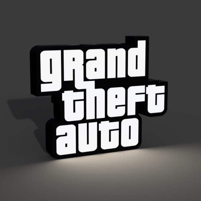 Ajoutez une touche décorative à votre intérieur avec cette lampe LED au design inspiré de l’univers du jeu modialement connu GTA. Son éclairage met en valeur le logo avec un effet rétroéclairé très esthétique, idéal pour un bureau, une salle gaming, une chambre ou un espace dédié aux passionnés de jeu vidéo.