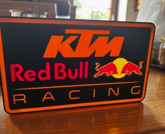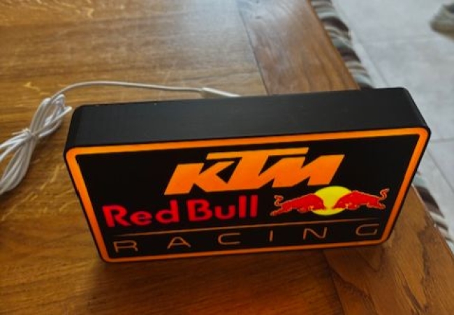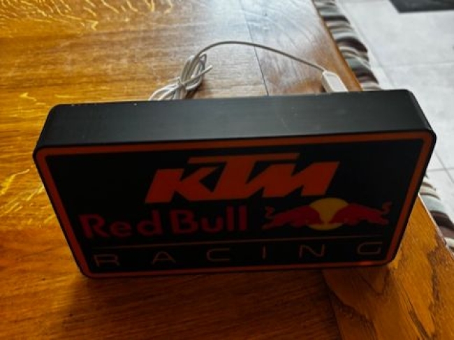Ajoutez une touche racing à votre intérieur avec cette lampe LED au design inspiré de l’univers KTM Red Bull Racing. Son éclairage lumineux met en valeur le logo avec un effet rétroéclairé très esthétique, idéal pour un bureau, un atelier, une chambre ou un espace dédié aux passionnés de moto et de sport mécanique.
